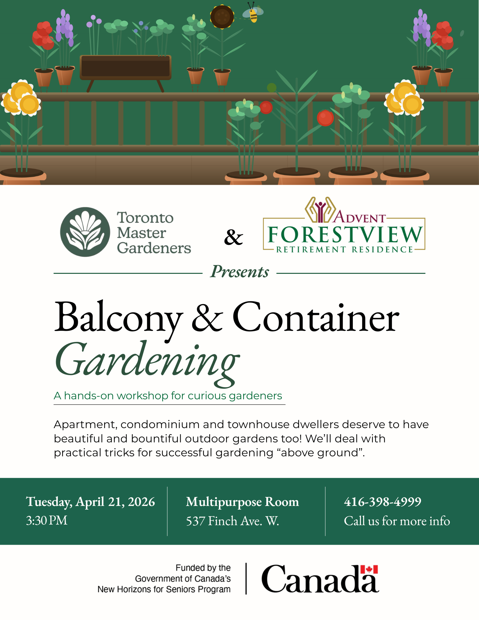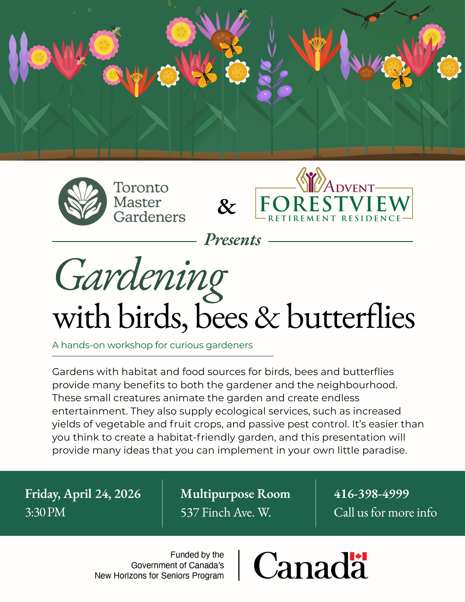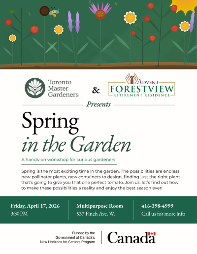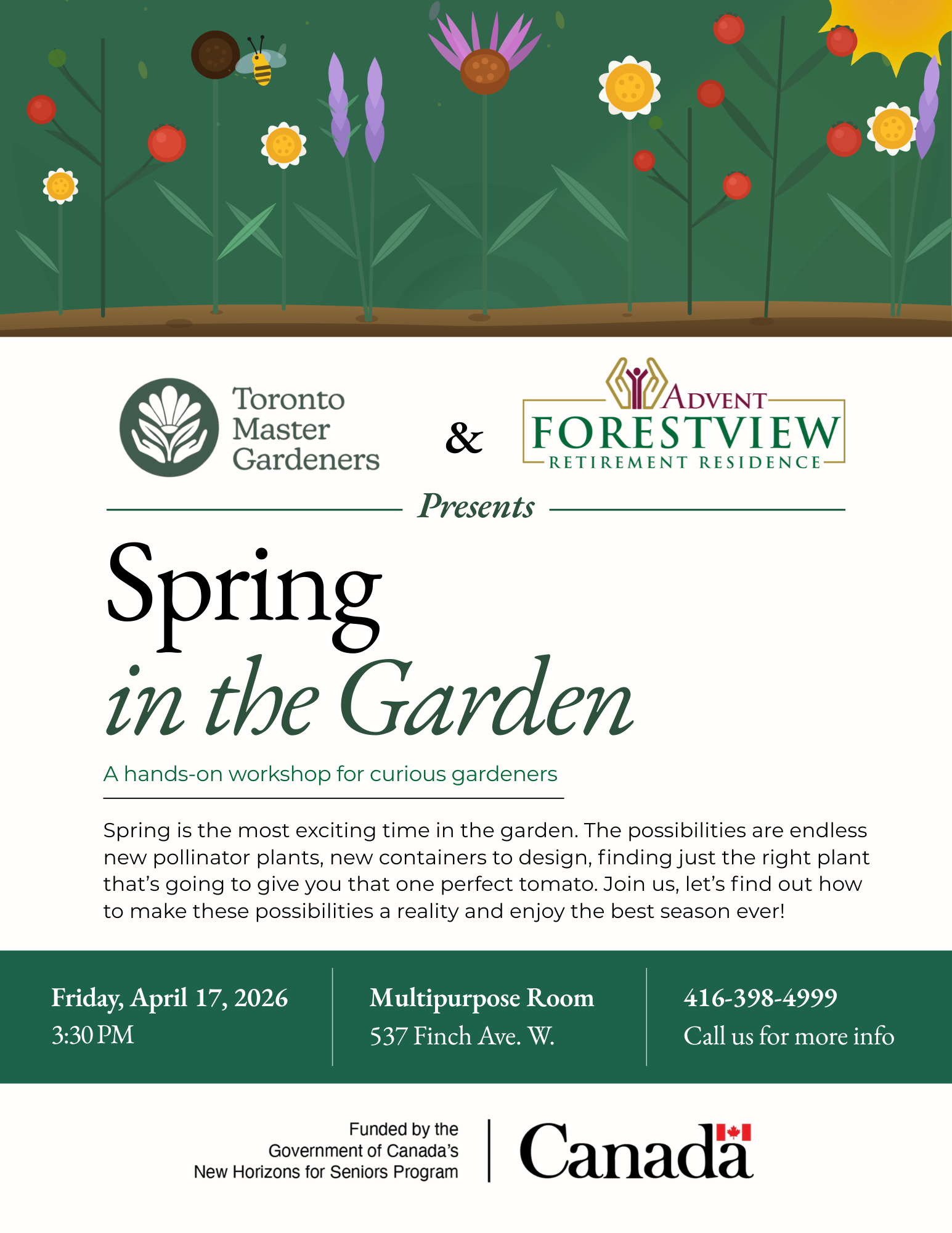 Join the Toronto Master Gardeners and Forestview Retirement Residence for an immersive gardening experience. Choose an event that interests you.